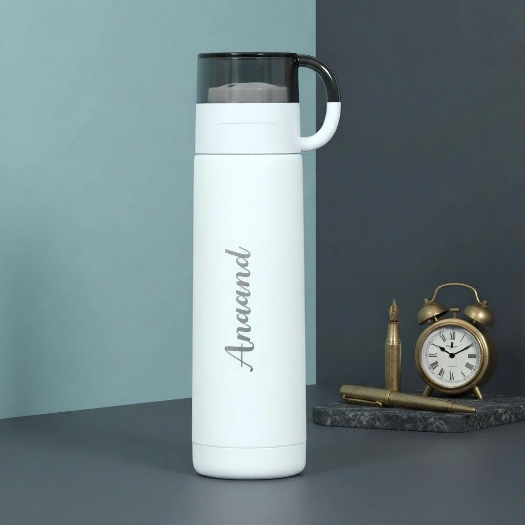 Enjoy your drink at the perfect temperature all day with this personalised steel thermos bottle. The double‑wall insulated stainless steel keeps your tea hot or water cold, while the custom name engraving adds a personal touch. Ideal for office, travel or gifting your loved ones. Strong, stylish and made for India.